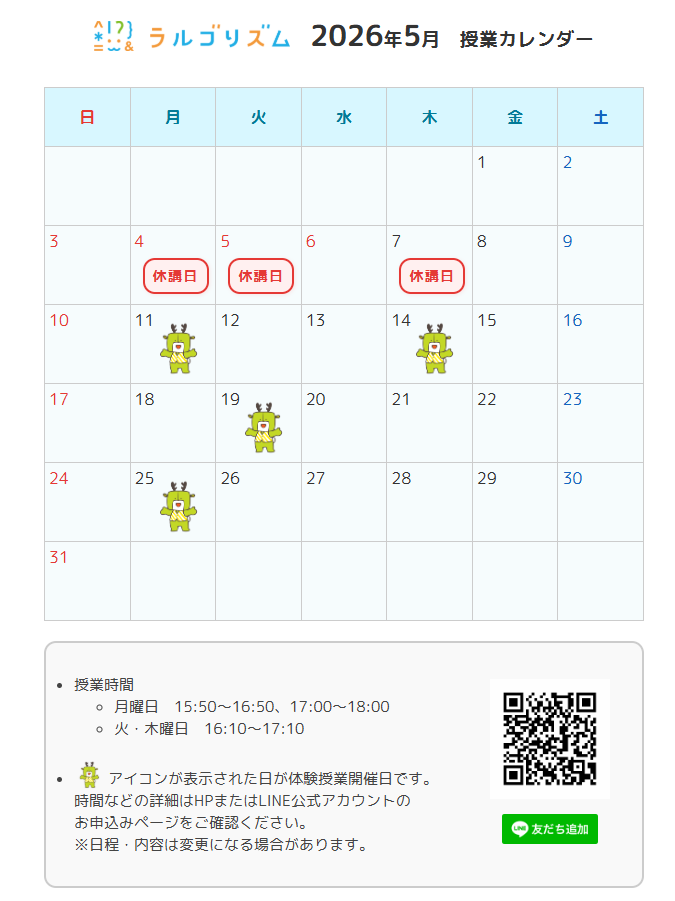 3. 【石神教室】2026年5月の授業カレンダー